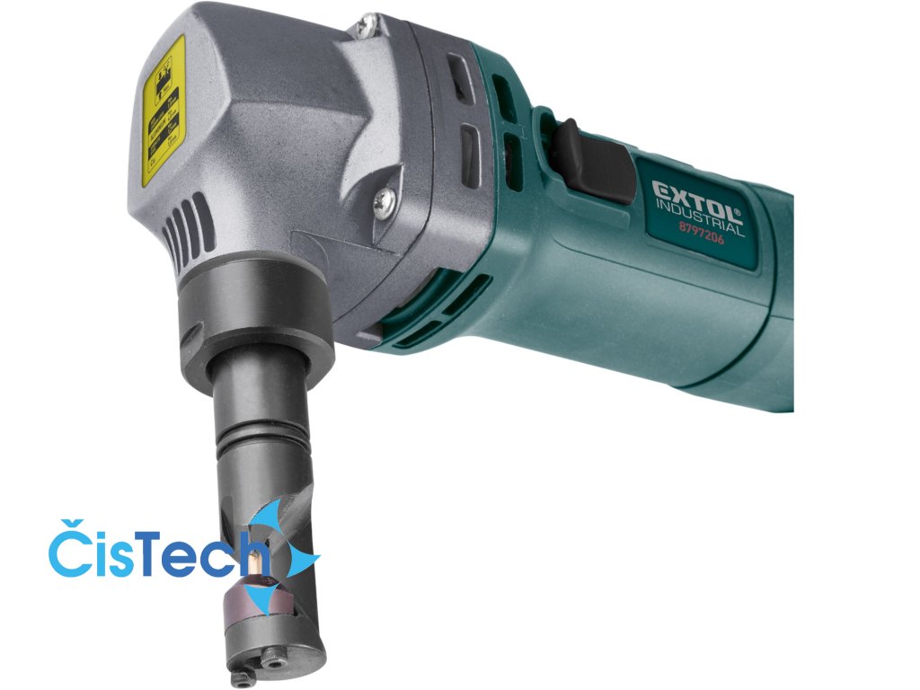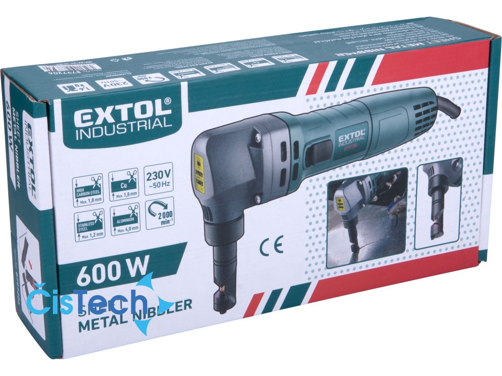 Elektrické nůžky jsou určeny k dělení plochého, vlnitého a lichoběžníkového plechu bez zkroucení a deformace hran. Díky matrici otočné o 360° lze vystřihovat libovolné tvary. Součástí přístroje jsou drážky pro změření tloušťky plechu. EXTRA VLASTNOSTI: * ideální nástroj pro vystřihávaní komplikovaných tvarů z plechu nebo stříhání vlnitého plechu * prostřih hliníku až do 4mm * díky úzkému tělu se nůžky snadno drží v ruceDoplňkové parametry