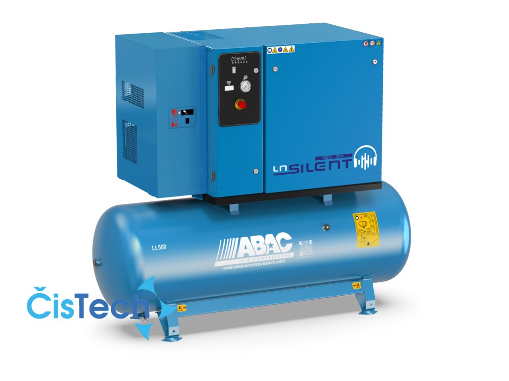 Dvoustupňový kompresor z řady Silent LN v olejem mazaném provedení se spojením elektromotoru s nízkootáčkovou kompresorovou jednotkou pomocí klínových řemenů. Perfektní odhlučnění pomocí kovového krytu s pěnovými panely a se zajištěním optimální provozní teploty stroje pomocí ventilátoru a vhodného vedení chladicího vzduchu. Stroj je vybaven ležatým vzdušníkem a kondenzační sušičkou pro odstranění vlhkosti ze stlačeného vzduchu. Kompresor dále disponuje následujícími benefity a standardním vybavením:
