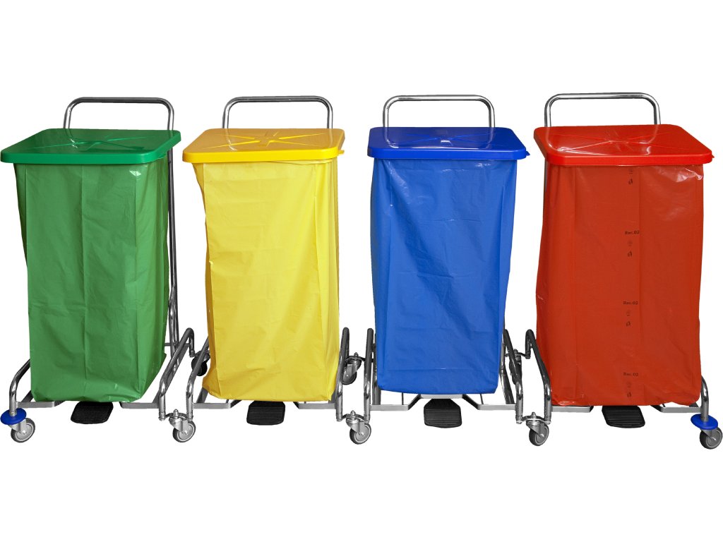 Vozík na odpad ovládaný nožním pedálem. Podvozek je osazen kolečky pr. 75 mm. Velice pohodlné ovládání nohou bez nutnosti dotýkat se víka rukou. Slouží k instalaci pytlů 120 l, ale lze objednat i jako variantu na pytle 70 l. Případnou preferenci prosím zapsat do poznámky. Na každém držáku pytle jsou 3 spony na pytel. Igelitový pytel není v ceně.