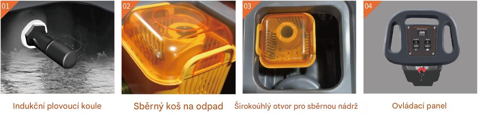 - Koš na hrubé nečistoty zabraňuje ucpání a prodlužuje životnost stroje