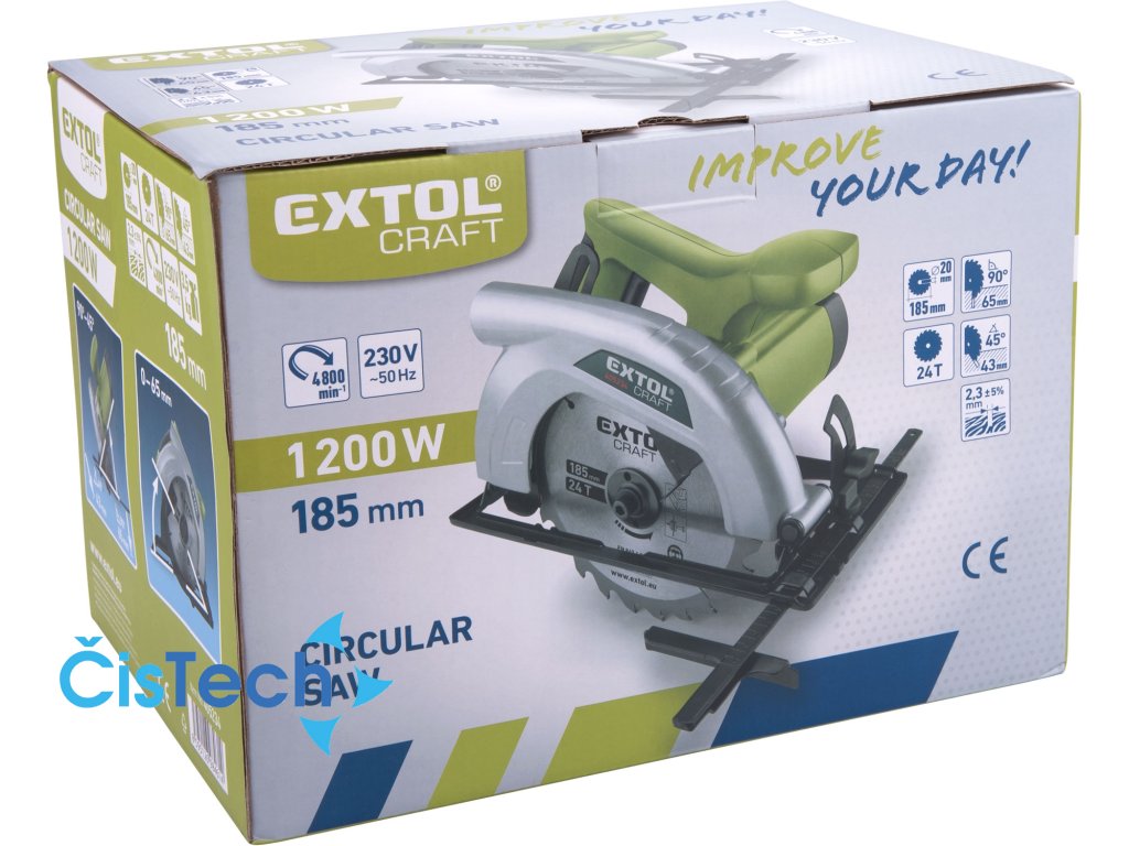 Kotoučová pila, určená pro rovné řezy ve dřevě a dalších deskových materiálech do hloubky 65mm. Použitelná je i pro řezání dřevěných desek, plastů, sádrokartonu a hliníkových profilů. UPOZORNĚNÍ: Nikdy pilu nepoužívejte na jiné materiály jako např. kov(Fe), beton nebo kámen. EXTRA VLASTNOSTI: * základová deska a vodící lišta pro podélné řezání * standardní kotouč je možné nahradit také kotouči vyšší třídy ze sortimentu Extol Premium * možnost sklopení řezu do úhlu 45° * pila s kvalitními ložisky uřízne materiál až do tloušťky 65mmDoplňkové parametry