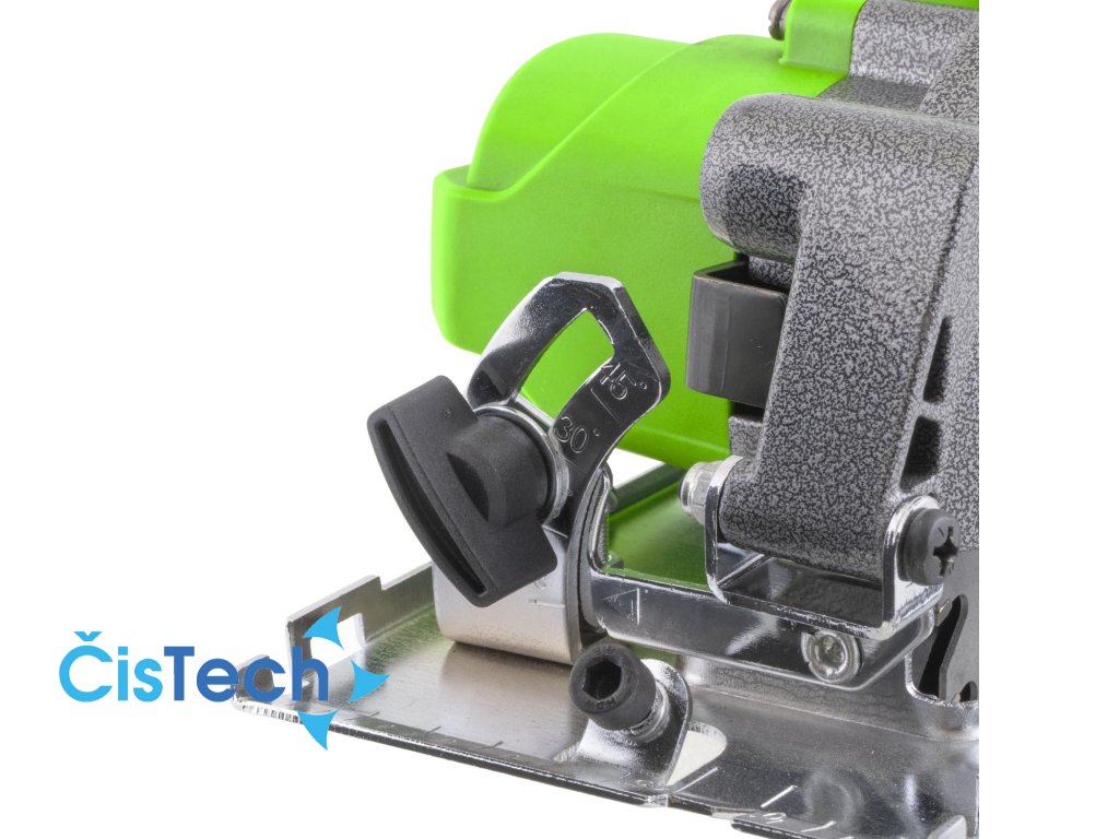 Jsou možné úhlově přesné pokosové řezy pod úhlem 90 stupňů pro práci s laminátem, pod úhlem 45 stupňů pro desky nebo obklady.