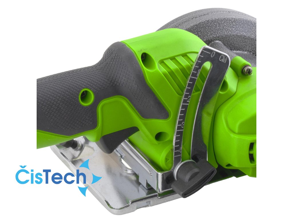 Pro přesné nastavení hloubky řezu je kotoučová pila vybavena stupnicí, podle které můžete zvolit libovolnou hloubku řezu od 0 až do maximální hloubky 41 mm.
