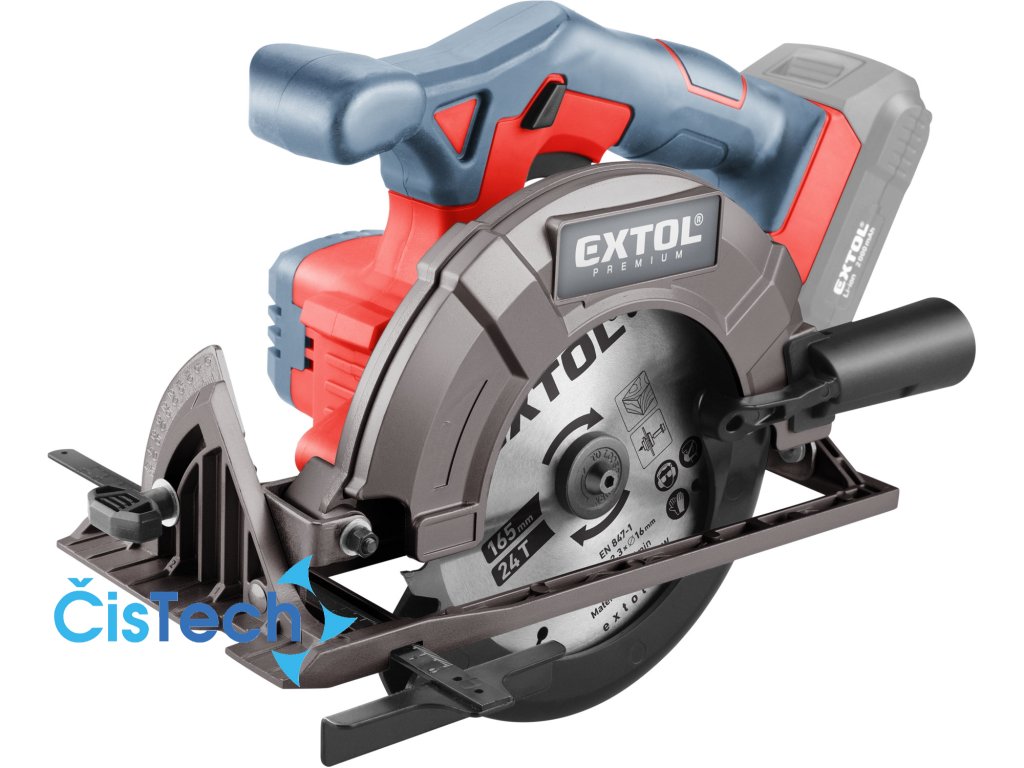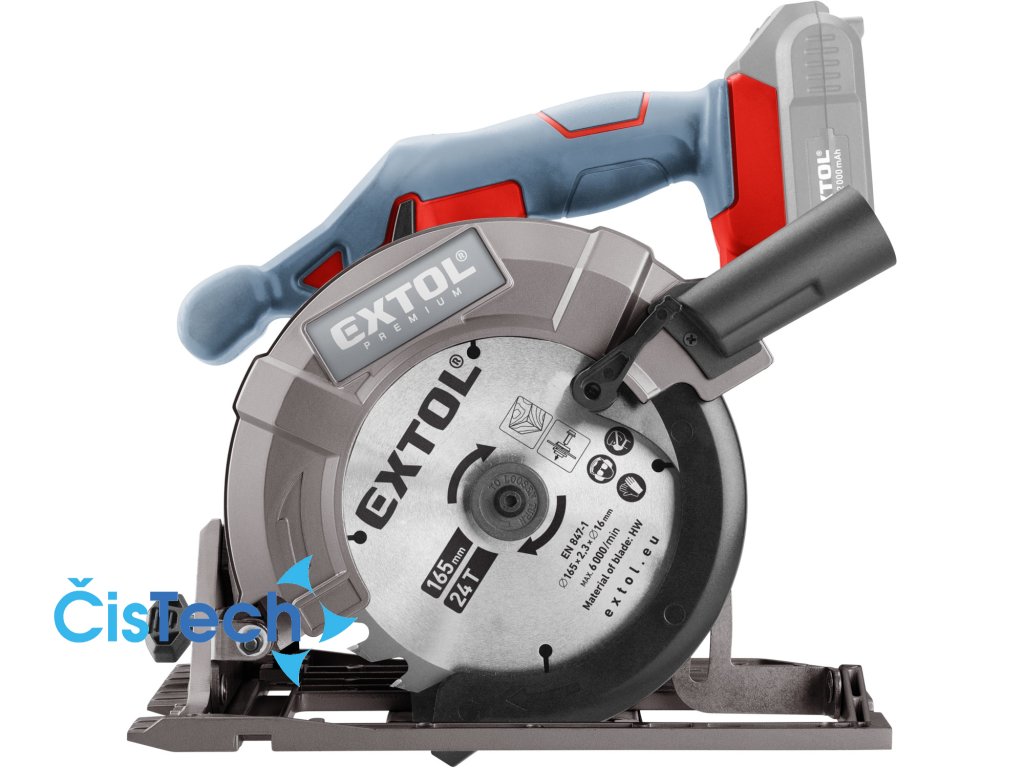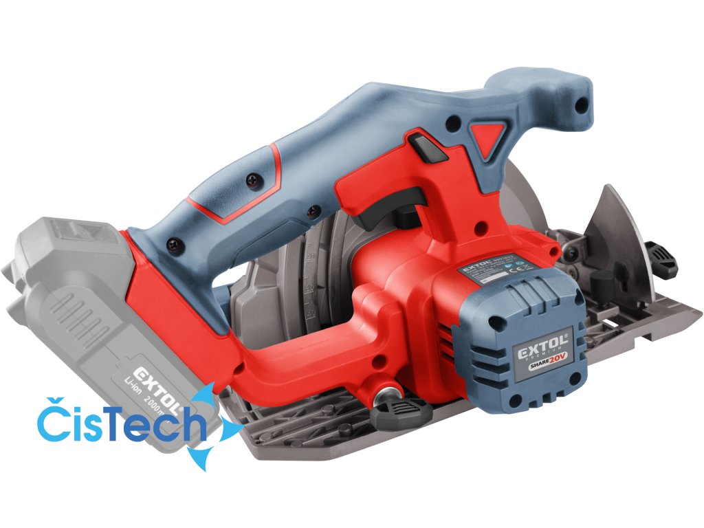 Aku kotoučová pila je navržena tak, aby uživatelům poskytla výkonné a snadné řezání při různých instalatérských, elektrických, rámovacích, dokončovacích a tesařských pracích. Pila je poháněná silným motorem s otáčkami 3650/min, který umožňuje uživatelům rychle a snadno řezat tvrdým materiálem. Horní a spodní kovový ochranný kryt poskytují vynikající ochranu kotouče při pádu. Gumová měkká rukojeť je ergonomicky navržena tak, aby uživatelům poskytovala vynikající pohodlí a vyvážení pro snadno ovladatelné řezy. Pro běžnou práci dostačují jeden nebo dva 2000mAh akumulátory, které můžete rychle nabít v rychlonabíječce, pro náročnější nebo delší práci doporučujeme větší akumulátory s kapacitou 4000–8000mAh. Akumulátor lze použít ve všech typech nářadí řady EXTOL SHARE20V. Díky použité Li-ion technologii je ho možné kdykoliv dobíjet, aniž by se tím snižovala jeho kapacita. Li-ion akumulátor ztrácí energii vlivem samovybíjení velmi pomalu a vydrží dlouho nabitý a připravený k použití. EXTRA VLASTNOSTI: * pevná hliníková základna pro maximální stabilitu a přesnost řezu * možnost sklopení řezu až do úhlu 45° * vodící lišta pro podélné řezání * jednoduché nastavení hloubky řezu a nastavení šikmého úhlu * připojení odsávání umožňují zachování čistého pracovního prostředí * elektronická brzda rychle zastaví kotouč při přerušení práceDoplňkové parametry