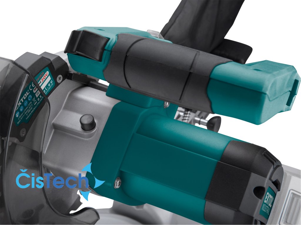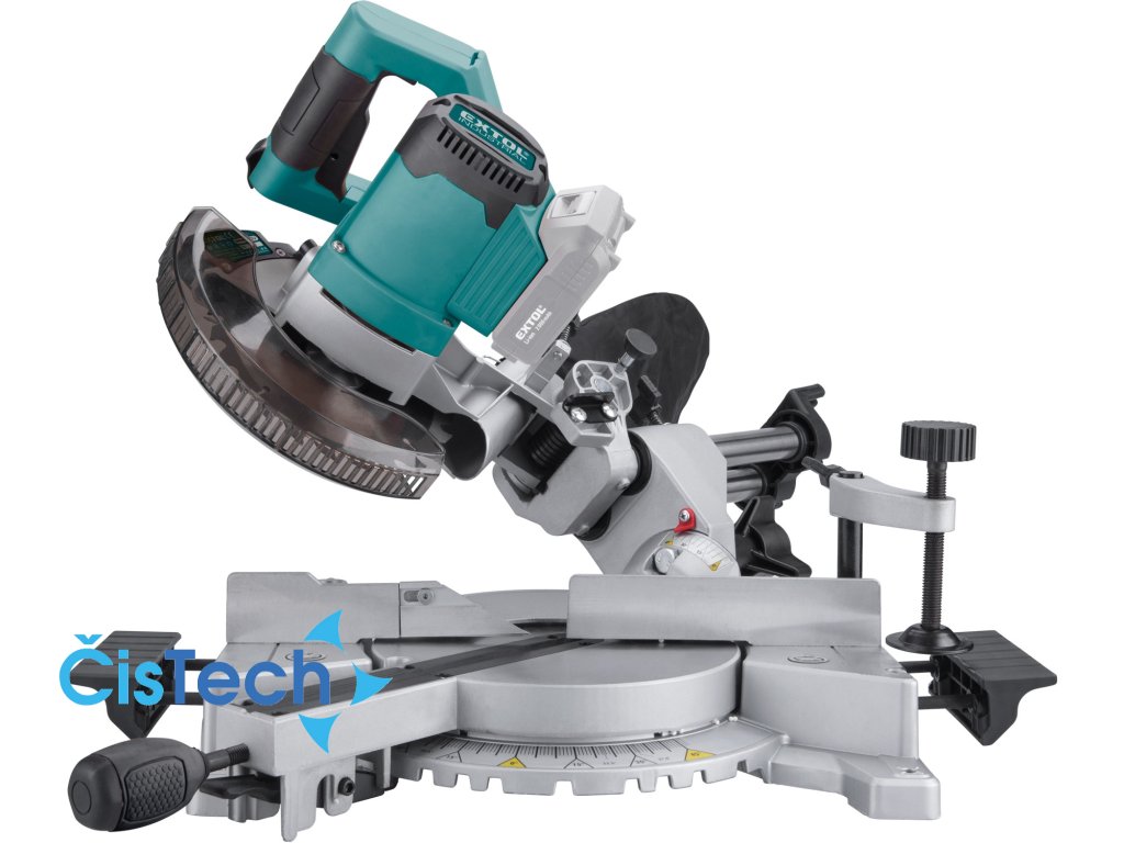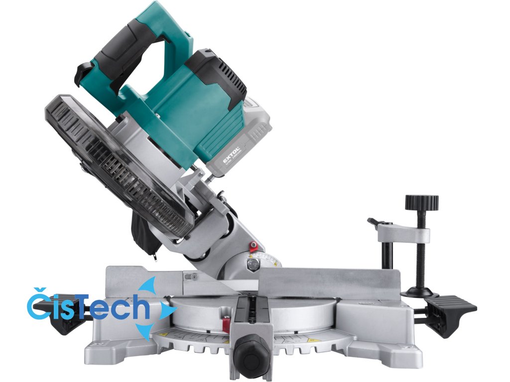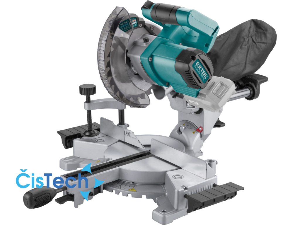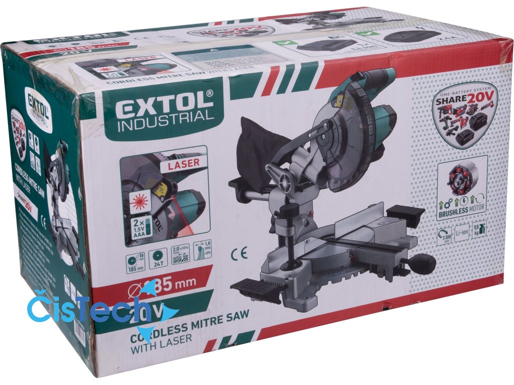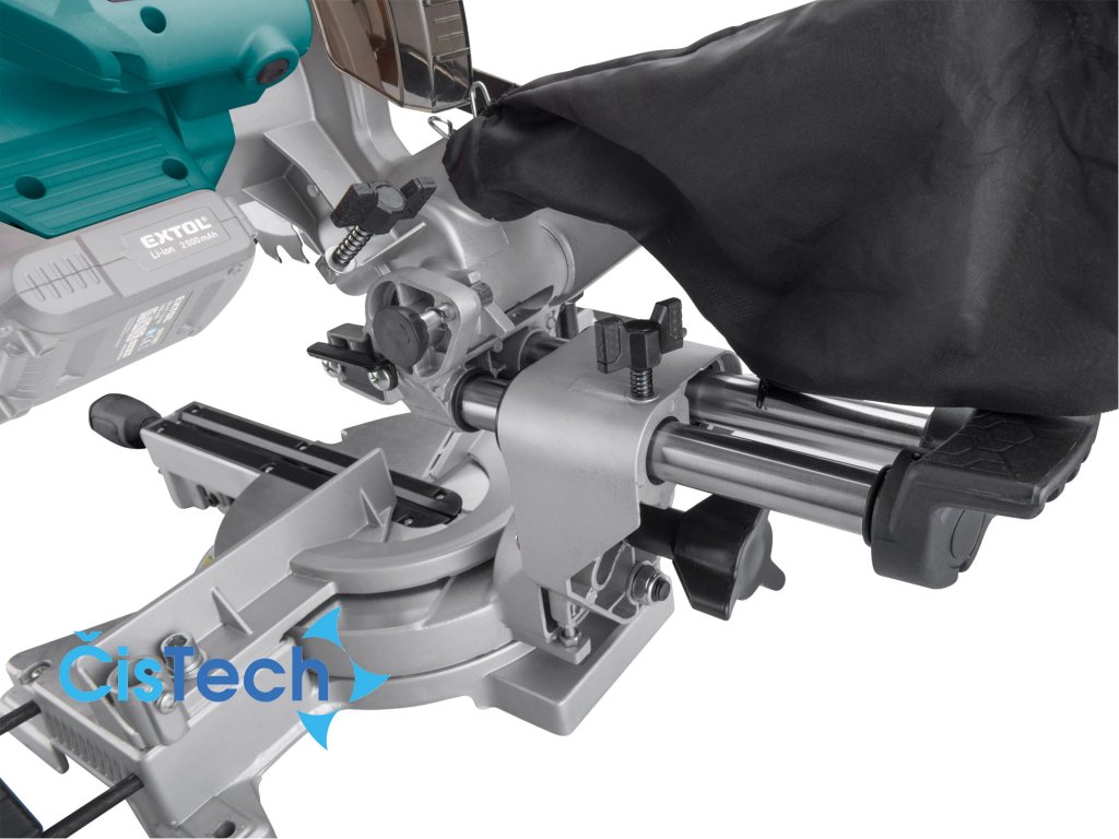 Aku pokosová a kapovací pila s laserem je určena k provádění přesných příčných a podélných řezů dřeva používaného pro stavební účely, dřevovláknitých a dřevotřískových desek, dále tenké umělé hmoty, hliníkových profilů a tenkých měkkých neželezných materiálů s použitím k tomu určených pilových kotoučů. Pila je poháněná nejmodernějším „brushless" motorem s 3300 ot./min, který umožňuje uživatelům rychle a snadno řezat materiálem. Tento nový typ motoru má vyšší životnost, je výkonnější a má menší spotřebu el. energie než klasické motory s uhlíkovými kartáči. Masivní základna pily je vyrobena z hliníku. Pro pohodlnou práci je pila vybavena laserem, výsuvnými opěrkami pro delší materiály a svěrkou pomocí které si můžete upnout materiál na pracovní plochu. Pro zvýšení bezpečnosti práce má pila el. brzdu, která zastaví pilový kotouč ihned po vypnutí. Součástí pily je výstup pro zachytávání pilin do přiloženého pytlíku nebo pro připojení k odsávacímu systému. 2000mAh baterie stačí až na 110 řezů hranolu 50×50mm. Pro běžnou práci dostačují jeden nebo dva 2000mAh akumulátory, které můžete rychle nabít v rychlonabíječce, pro náročnější nebo delší práci doporučujeme větší akumulátory s kapacitou 4000–8000mAh, které také poskytují vyšší řezací výkon. Akumulátor lze použít ve všech typech nářadí řady EXTOL SHARE20V. Díky použité Li-ion technologii je ho možné kdykoliv dobíjet, aniž by se tím snižovala jeho kapacita. Li-ion akumulátor ztrácí energii vlivem samovybíjení velmi pomalu a vydrží dlouho nabitý a připravený k použití. EXTRA VLASTNOSTI: * nejmodernější „brushless" motor * vybavena laserem, opěrkami, svěrkou * el. brzda * hliníková základna * odsávání pilin do pytlíku nebo vysavačeDoplňkové parametry