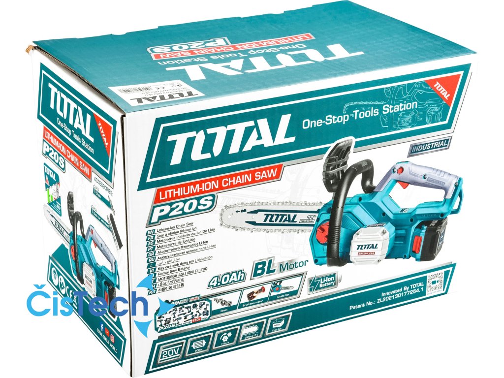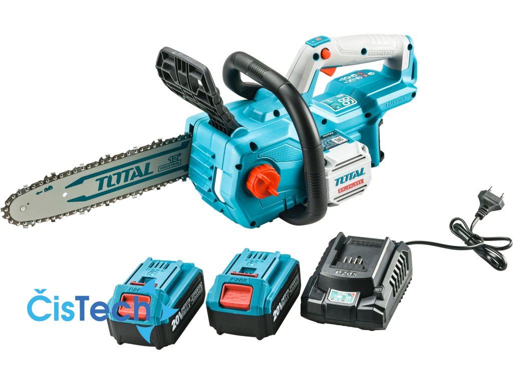 Pila řetězová aku 900W, BRUSHLESS, 20V Li-ion, 4000mAh (2x), nabíječka, 30cm