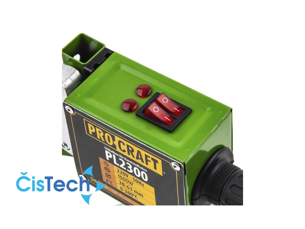 Polyfúzní svářečka Procraft PL2300 je určena k svařování plastových trubek z homopolymer polypropylenu, PPC, PPR a PELD. Regulace teploty v rozsahu 0-300°C umožňuje nastavení optimálních parametrů při práci s různými materiály. Sada nástavců zaručí svařování potrubí od 20 do 63mm. Lehká a kompaktní konstrukce umožňuje práci v omezeném prostoru. Součástí dodávky jsou nástavce s teflonovým povrchem D20/25/32/40/50/63mm, kovový kufřík, šroubovák, imbusový klíč, rukavice a metr. Balení karton.