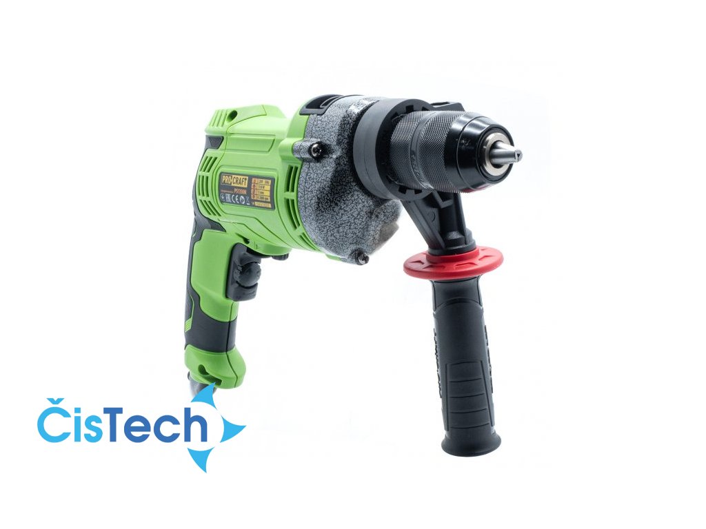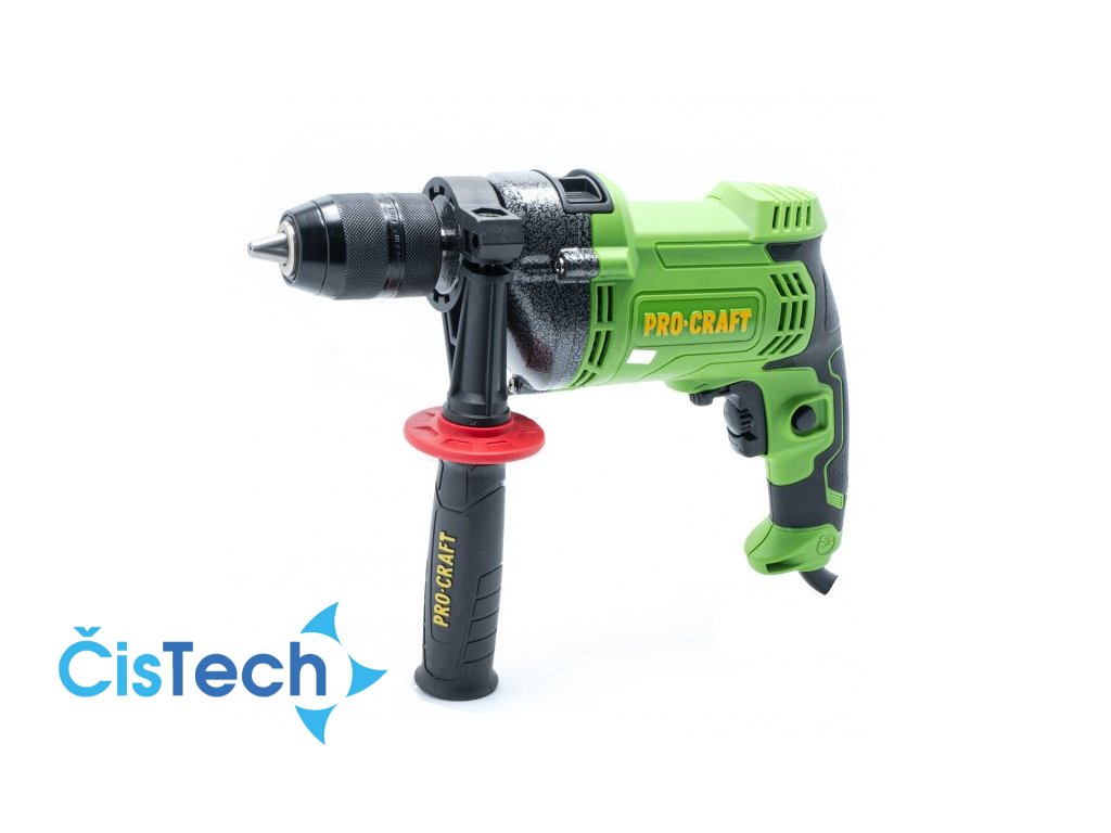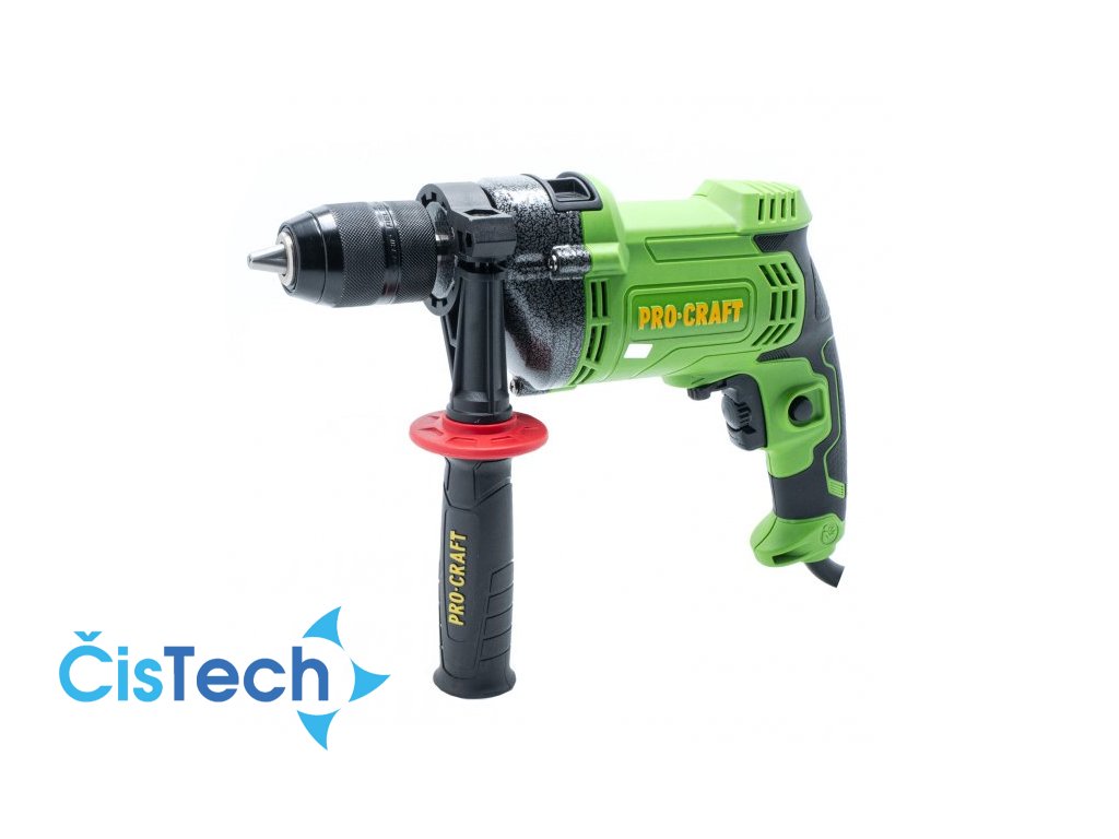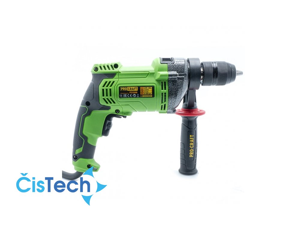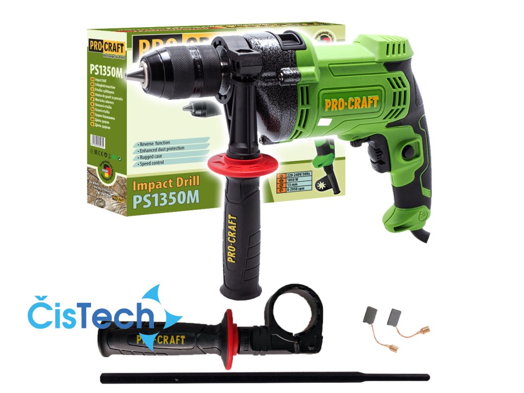 Elektrické příklepové vrtačky Procraft PS1350 a PS1350M jsou určeny k vrtání do dřeva, betonu a kovu. Regulace otáček umožňuje nastavení optimálních parametrů při práci s různými materiály. Silný motor s výkonem 1050 W a vysokých otáček až 2950 zaručuje dlouhou bezporuchovou práci. Funkce vrtání s příklepem usnadní a zrychlí práci s cihlou, betonem a kamenem. Rychloupínací sklíčidlo u vrtačky PS1350M umožňuje snadné a rychlé upnutí vrtáků a stopkových nástrojů do průměru 13 mm. Možností změny směru otáček dovoluje povolování a utahování šroubů. Součástí dodávky jsou uhlíkové kartáče. Balení karton.