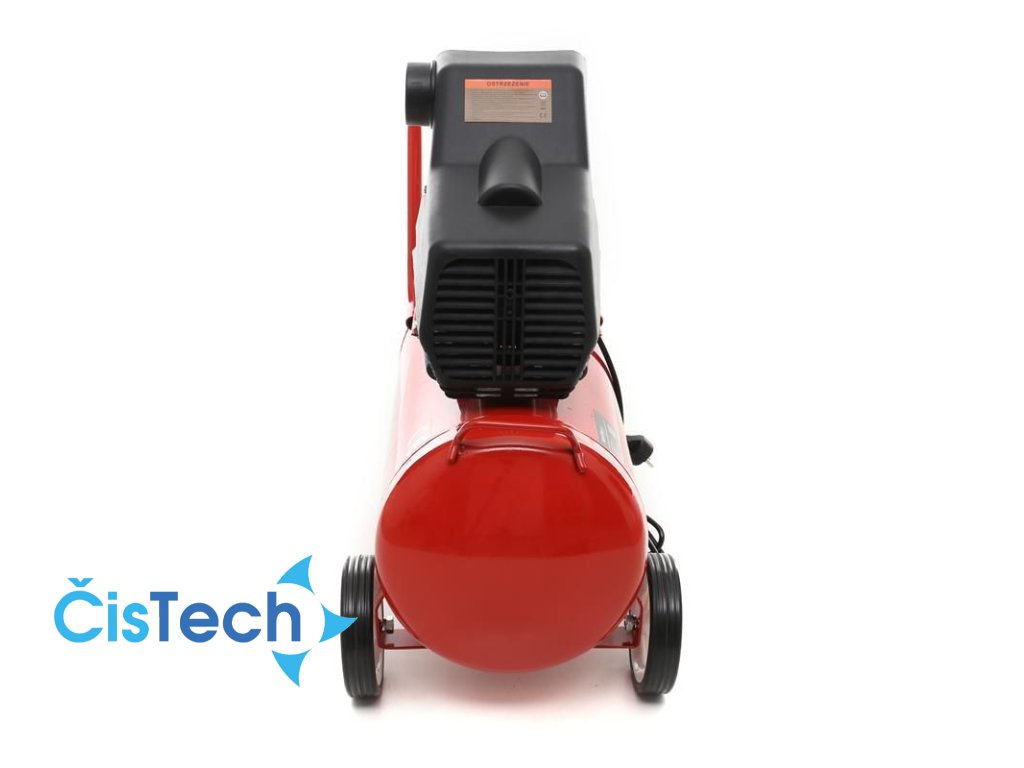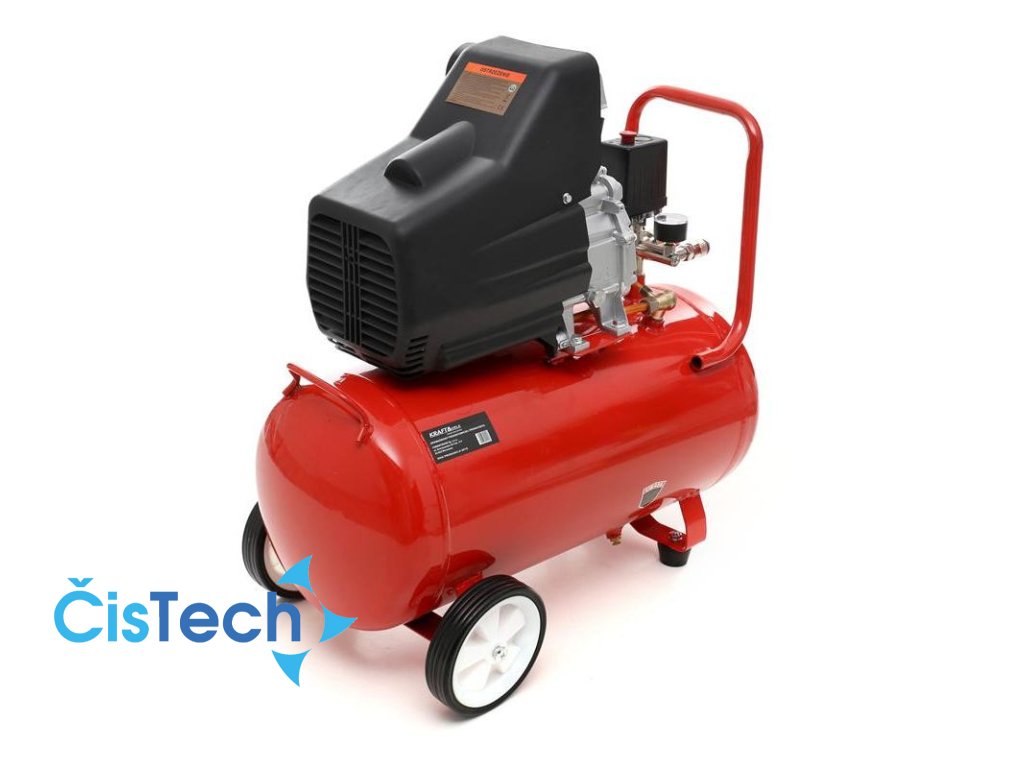Kompresor je vybaven jednoválcovou jednotkou mazanou olejem, která zajišťuje dlouhou životnost a stabilní provoz i při delším zatížení. Díky kolům a madlu je snadno přemístitelný, takže ho lze bez problémů použít i v různých částech dílny nebo na stavbě.
