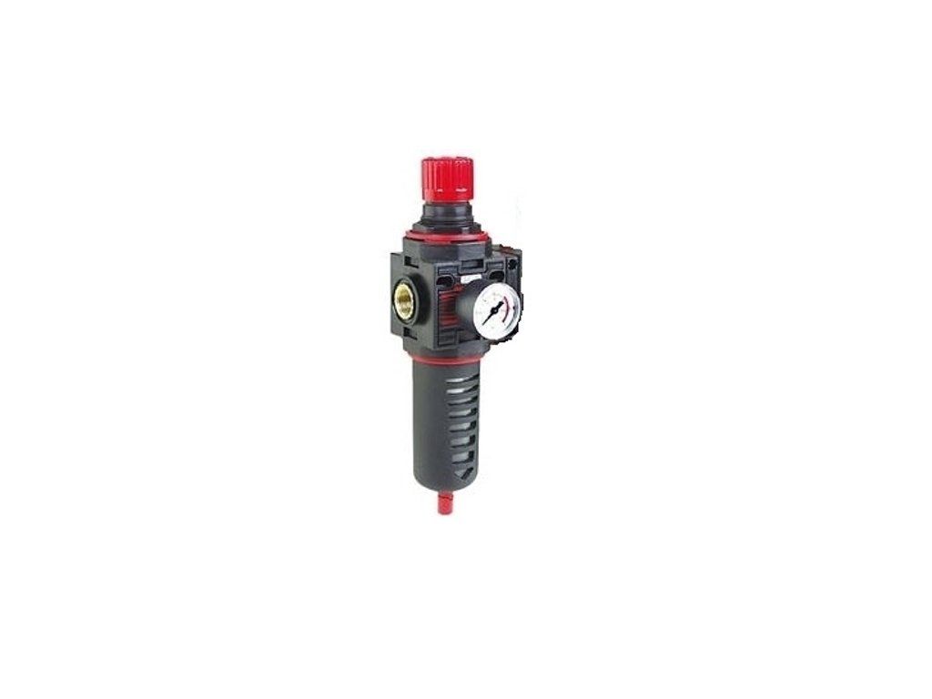 Tlakový regulátor s manometrem a poloautomatickou drenážní jednotkou kondenzátu. Připojení 3/8"F. Pro kompresory Fiac.