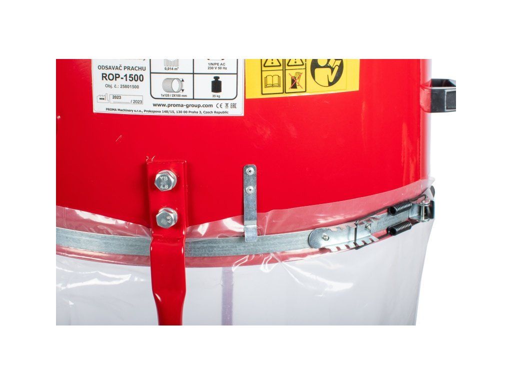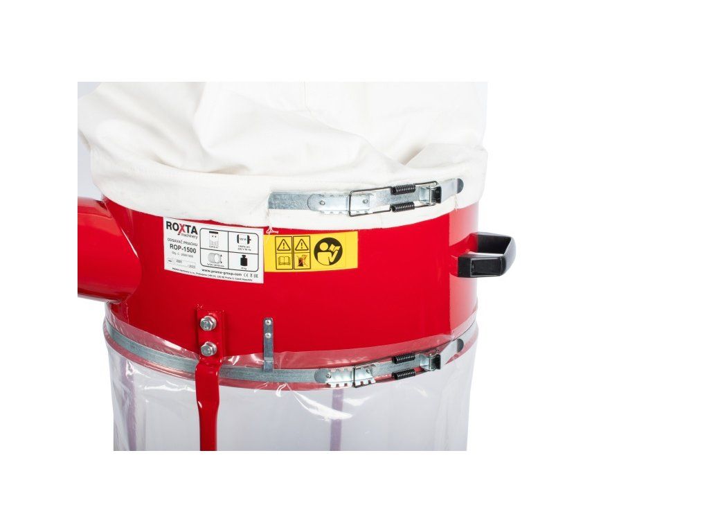 ROP-1500 - Odsavač prachu ,pilin a třísek najde využití v truhlářských provozech, kde zajišťují čisté a bezprašné prostředí bez zbytečného odvětrávání tepla. Lze je použít u všech truhlářských strojů, kde není velikost prachových částic menší než 0,3 mm³. Z těchto důvodů by toto zařízení nemělo chybět v žádné dílně Stojan s kolečky umožňuje jejich mobilitu.je ideální volbou pro každého, kdo si cení čistého a zdravého pracovního prostředí. Stroj se skládá z kovového podstavce s plastovými kolečky, na kterém je připevněno plechové tělo odsavače s motorem, lopatkami ventilátoru a přírubou na připojení odsávací trubice. K tělu odsavače je přes trubici připevněna objímka s filtračním a odpadovým vakem.