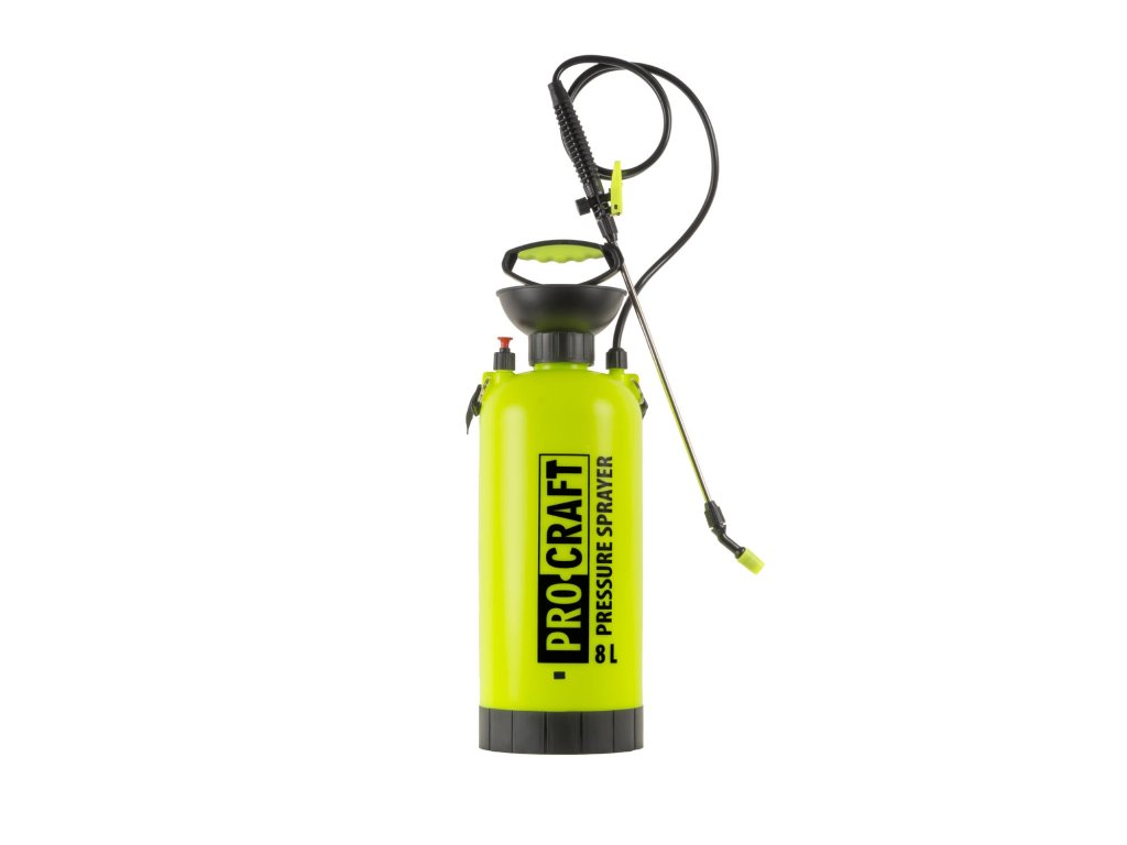 Ruční postřikovač Procraft HS-8 Objem nádrže 8 l Kovová postřikovací trubice. Postřikovač je vyroben z kvalitních materiálů, které pod tlakem nepraskají. Je vybaven gumovým těsněním, které má větší odolnost než standardně dodávané silikonové těsnění. V balení jsou praktický zádový popruh, těsnící kroužky a komfortní spouštěcí pistole. Nádoba postřikovače je průsvitná, takže při práci vidíte objem kapaliny.