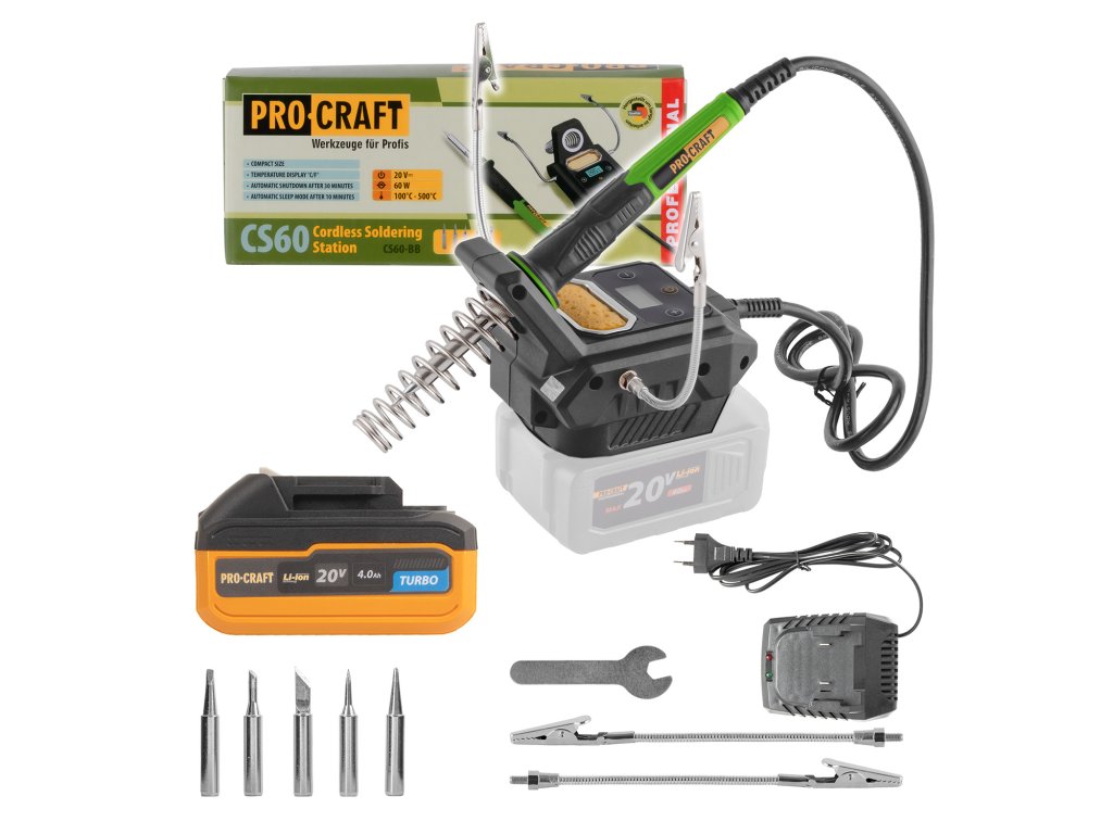 Procraft CS60-BB je praktické a výkonné řešení pro všechny, kteří hledají mobilní pájení bez kompromisů. Nabízí vysoký výkon, přesnou regulaci teploty, bezpečnostní funkce i bohaté příslušenství, díky čemuž je vhodná jak pro domácí kutily, tak pro servisní a montážní práce v terénu. Díky bohatému příslušenství a jednoduchému ovládání je vhodná jak pro domácí uživatele, tak pro servisní a dílenské použití, hned připraveno k okamžitému použití bez nutnosti dokupování dalšího příslušenství.