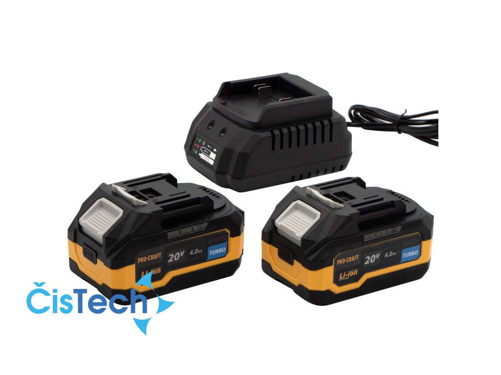 Sada dvě baterie 20V 4Ah Procraft Turbo a nabíječka na baterie 20/1
