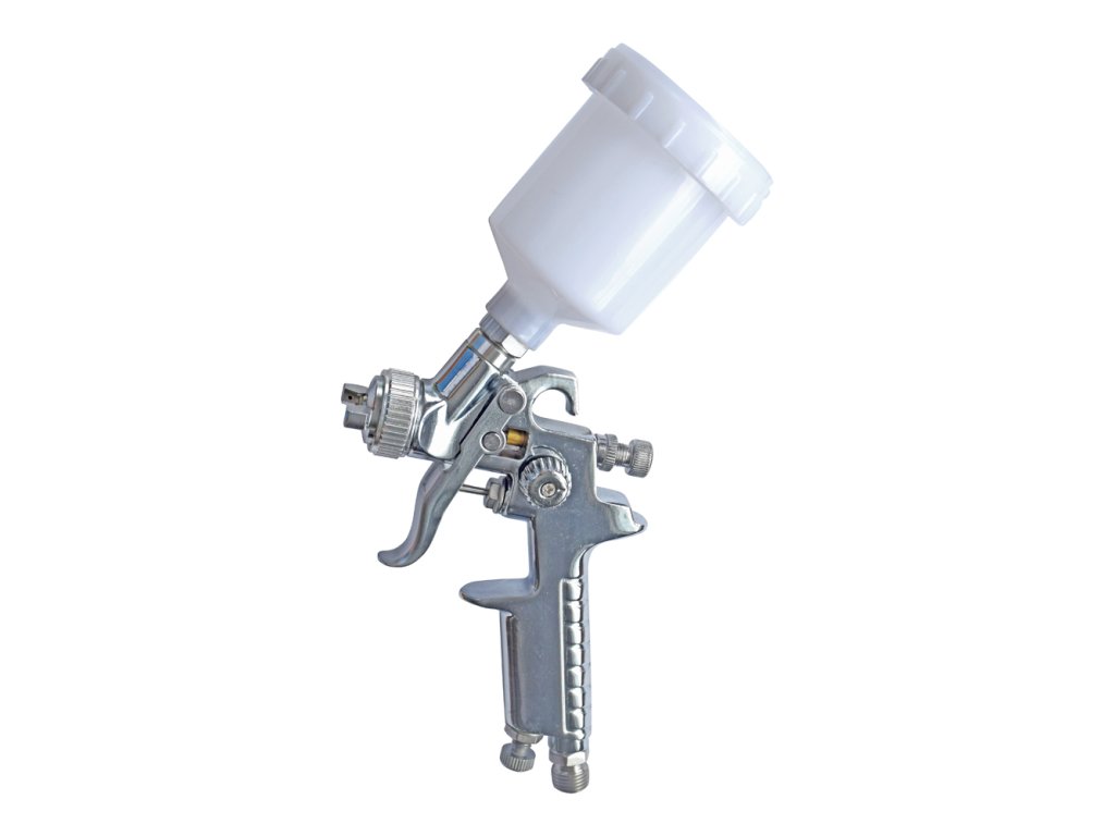 - malá stříkací pistole se systémem HVLP pro vysokou efektivitu přenosu nátěrové hmoty