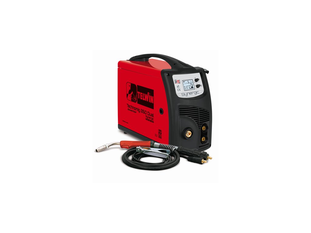 Multifunkční svářečka CO2 - svářecí invertor CO2 (MIG-MAG) Technomig 260 Dual Synergic Telwin, MIG/MAG, MMA, TIG DC/LIFT, microprocesorem řízený svářecí invertor CO2 MIG-MAG, pro sváření bez plynu i s plynem, profesionální stroj pro autoopravárenství a malé zámečnické provozy.