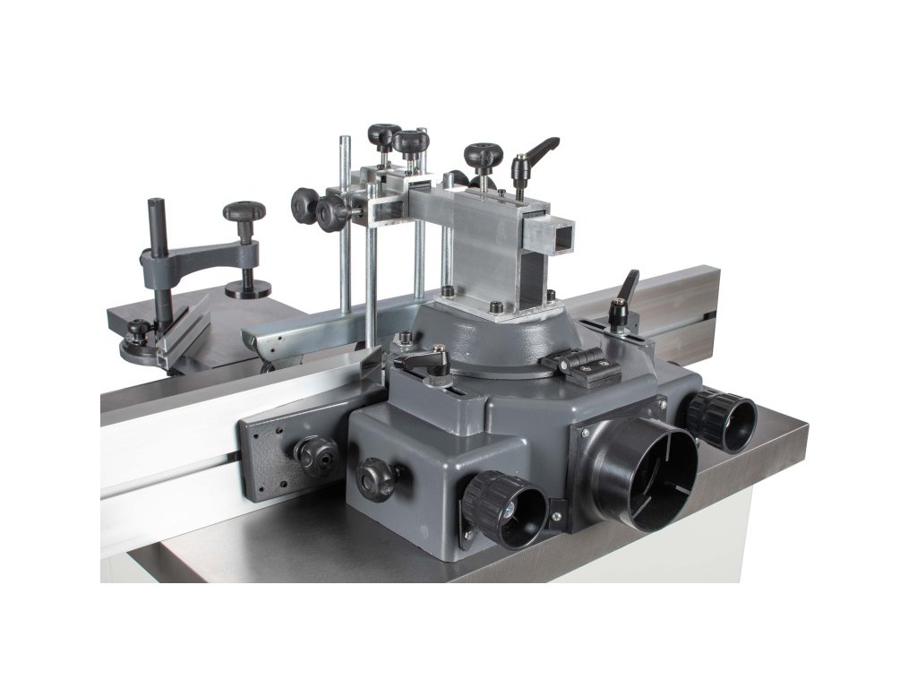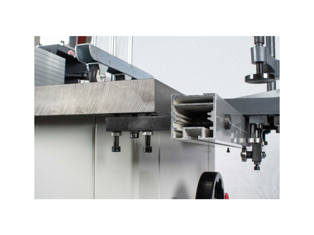 - Robustní ochranný kryt frézovacího nástroje s přesně nastavitelnými hliníkovými dorazovými lištami
