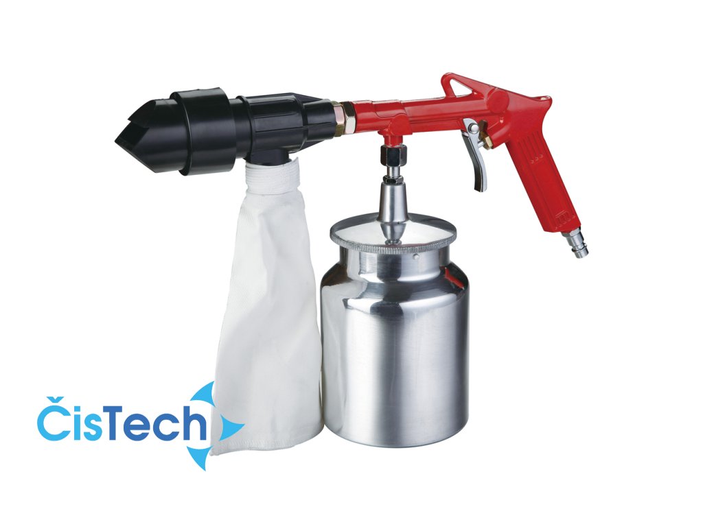 - pískovací pistole pro otryskávání malých předmětů v bezprašném provedení se sáčkem na zpětné zachytávání abrazivního materiálu