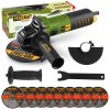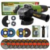 Pozvolný rozběh, dlouhý gumový přívodní kabel. Úzké tělo je lehce ovladatelné. Úhlová bruska 125mm + 10x řezný kotouč, 2x lamelový kotouč, 850W, 12000 ot./min, hmotnost 1,6 kg,