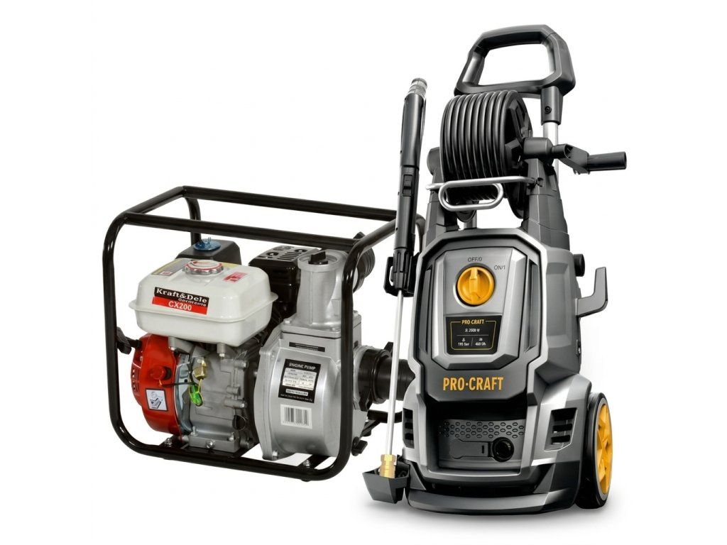 Druhou část setu tvoří vysokotlaký čistič PROCRAFT CW2.5-195, který je určený pro tlakové čištění a údržbu. Na rozdíl od vodního čerpadla zde není hlavním cílem přečerpat co největší objem vody, ale využít tlak vody k účinnému odstranění nečistot z povrchu.