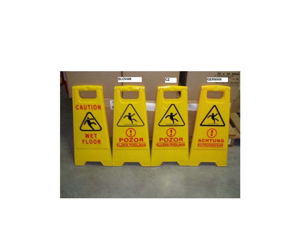 Vhodné do právě umytých prostor, kvůli bezpečnosti osob, které jdou po mokré klouzavé podlaze.