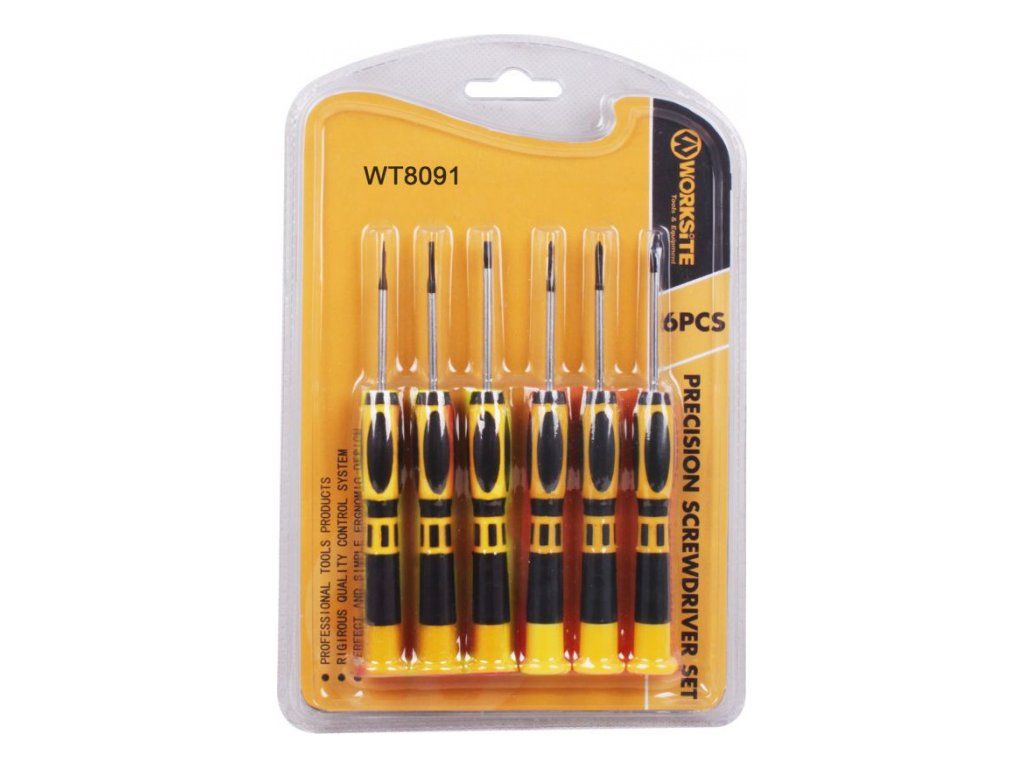 WT8091 je sada mini šroubováků navržená pro práci s malými šrouby a jemnými spoji, kde rozhoduje přesnost, cit v ruce a správně zvolený profil. V praxi jde o typ nářadí, které se používá při montáži, údržbě a opravách drobných komponentů, krytů, svorek a dalších částí, u nichž by běžný šroubovák mohl být příliš velký nebo méně přesný. Sada zahrnuje křížové profily PH00, PH0 a PH1 a dále velikosti 5/64", 1/8" a 5/32", což umožňuje zvolit vhodný nástroj podle velikosti a typu šroubu.