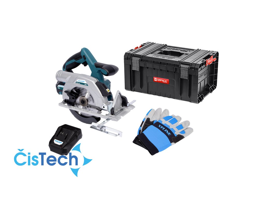 XTLINE Aku kotoučová pila bezuhlíková 18 V, 165 mm + baterie 5.0 Ah + nabíječka 3.5 A + box
