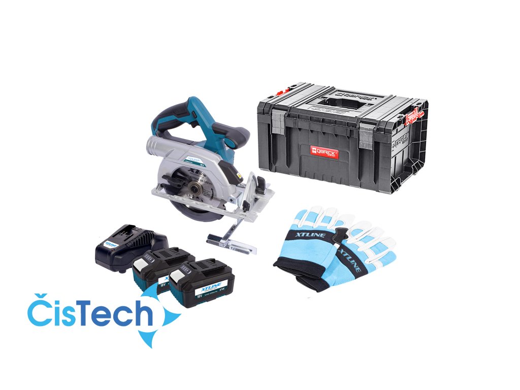 XTLINE Aku kotoučová pila bezuhlíková 18 V, 165 mm + 2 baterie 5.0 Ah + nabíječka 3.5 A + box