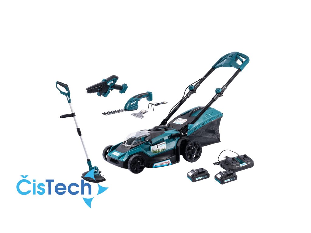 Aku zahradní set XTLINE obsahuje aku sekačku, strunovou sekačku, nůžky 3v1, řetězovou mini pilu, 2x baterii 18 V 4.0 Ah a dvounabíječku baterií. Všechna zařízení jsou vybavena protiskluzovým měkkým držadlem pro ergonomickou a bezpečnou manipulaci. Systém akumulátoru XTLINE poskytne dostatek energie pro celou řadu akumulátorového nářadí XTLINE. Jednou baterií totiž můžete pohánět všechny produkty setu.Doplňkové parametry