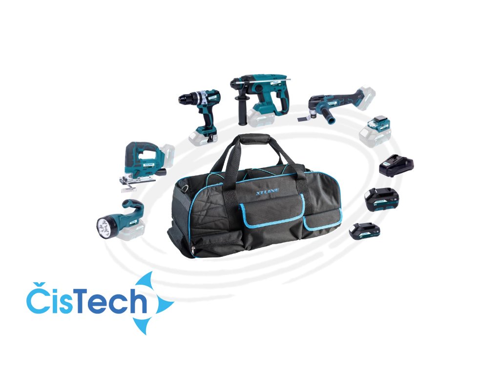 Sada aku nářadí XTLINE obsahuje, aku pneumatické kladivo, aku vrtačku, aku oscilační brusku, aku svítilnu, aku nabíječku, 2x baterii 18 V 2.0 Ah, 1x baterii 18 V 4.0 Ah a nabíječku. Všechna zařízení jsou vybavena protiskluzovým měkkým držadlem pro ergonomickou a bezpečnou manipulaci. Systém akumulátoru XTLINE poskytne dostatek energie pro celou řadu akumulátorového nářadí XTline. Jednou baterií totiž můžete pohánět všechny produkty setu.Doplňkové parametry