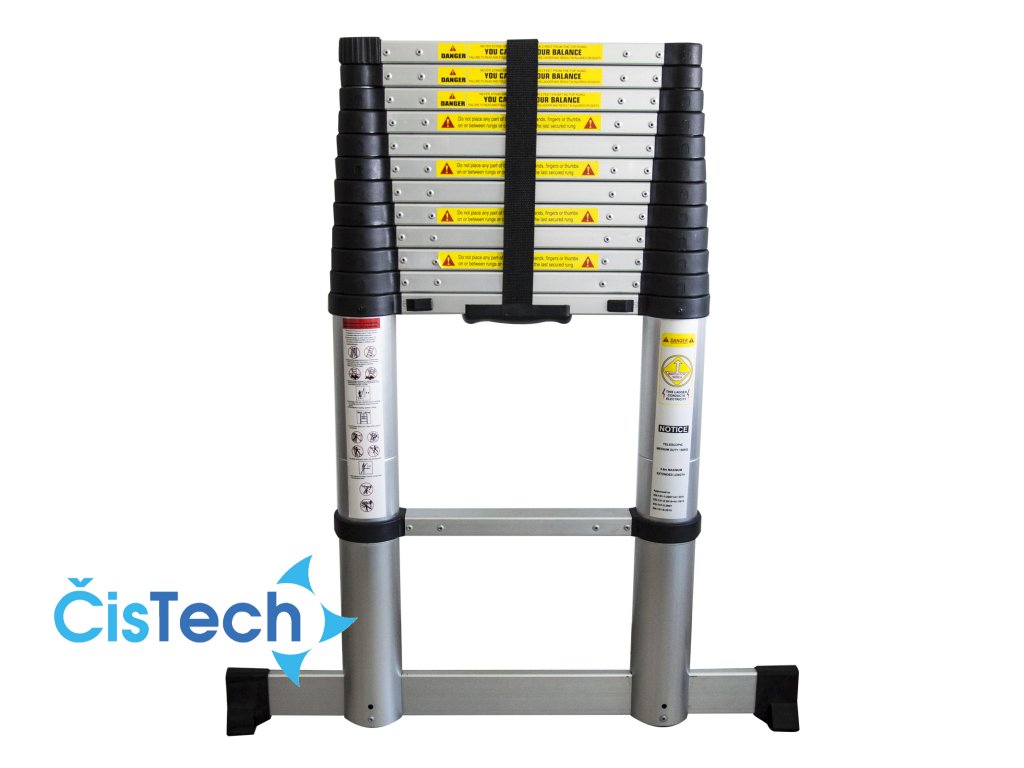 Teleskopický žebřík je velmi praktický všude tam, kde není dostatek prostoru. Díky jeho skladnosti a nízké hmotnosti je ideální pro převážení. Při vysouvání žebříku se jednotlivé příčky samy zaaretují a stlačením zámku je lze opět uvolnit. Automatické zámky při vysouvání žebříku. Nenáročný na přepravní místo a skladování. Variabilní nastavení výšky až do 3,8 m. Stabilní základna. Žebřík lze vysunout také pouze částečně.Doplňkové parametry