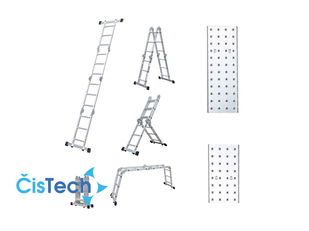 Žebřík hliníkový multifunkční Procraft PLA4.346 1x12 + plošina nášlapová P1480