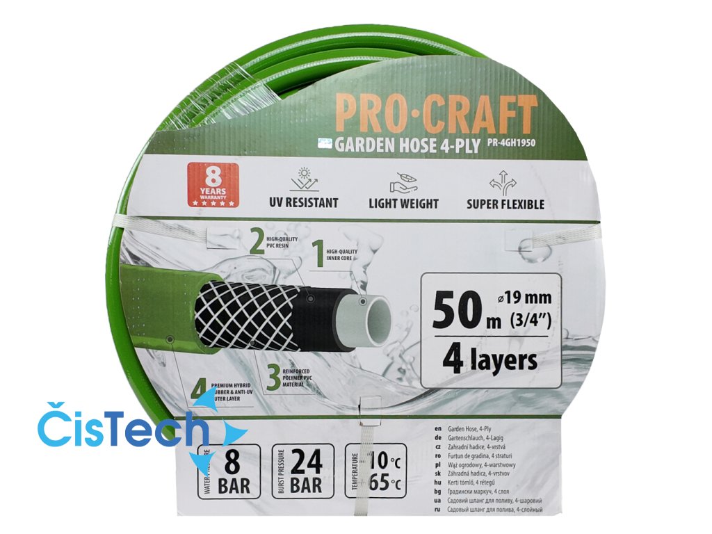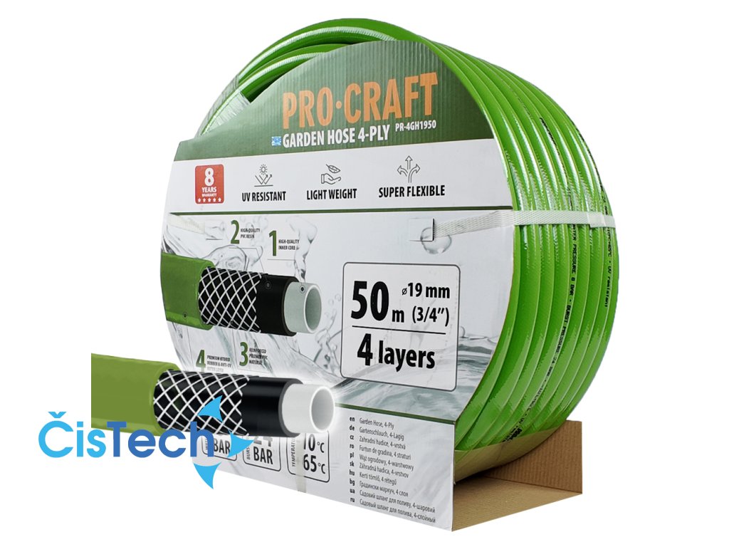 Zelená zahradní hadice Procraft PR-4GH1950 4 vrstvy, 3/4" 50 m