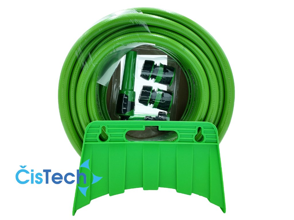 Příslušenství: Sada obsahuje dvě rychlospojky, přípojku, trysku a držak na hadice.
